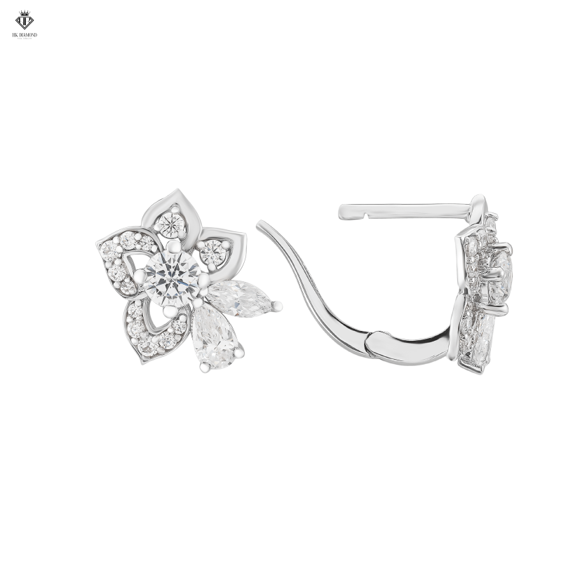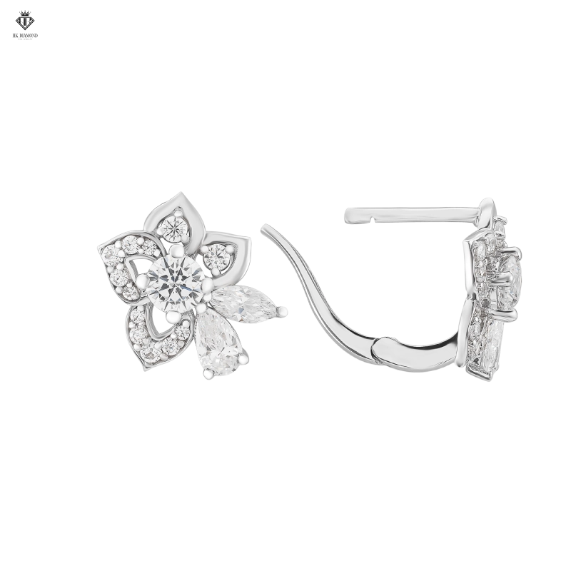 Flower Diamond Earring được các nghệ nhân kim hoàn nhà HK Diamond & Jewelry khoác lên vẻ ngoài đầy tinh xảo bởi được chế tác từ vàng trắng 18K. Những viên kim cương đạt tiêu chuẩn cao nhất về chất lượng cùng độ chính xác trong từng giác cắt, được đính một cách khéo léo trên đôi khuyên tai càng làm cho sản phẩm trở nên rực rỡ và kiêu sa.