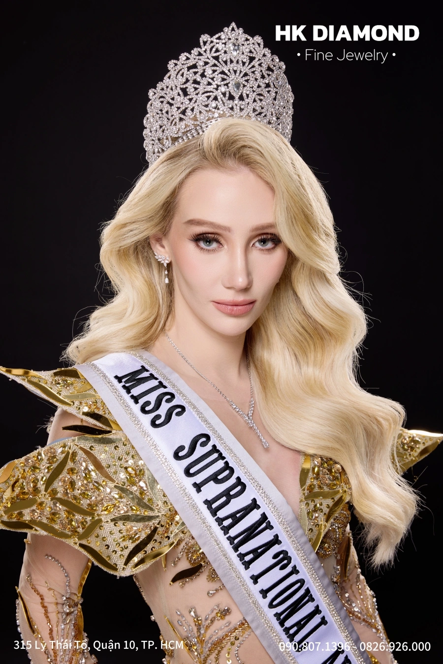 Với kỹ năng chế tác thượng thừa, HK Diamond thể hiện khả năng sáng tạo linh hoạt, có thể kiến tạo những thiết kế trang sức phù hợp với đa dạng như cầu, phong cách và trang phục, từ thảm đỏ danh giá đến những khoảnh khắc trình diễn mang tính biểu tượng. Mỗi tuyệt tác đều được tính toán tinh tế để hài hòa với từng bối cảnh, giúp tôn vinh thần thái và cá tính người diện. Điển hình là sự kết hợp đầy duyên dáng giữa đôi bông tai Fairy mềm mại, bay bổng cùng chiếc đầm dạ hội lộng lẫy của Miss Supranational, tạo nên tổng thể thanh thoát, sang trọng và cuốn hút, khẳng định đẳng cấp của nghệ thuật kim hoàn cao cấp.