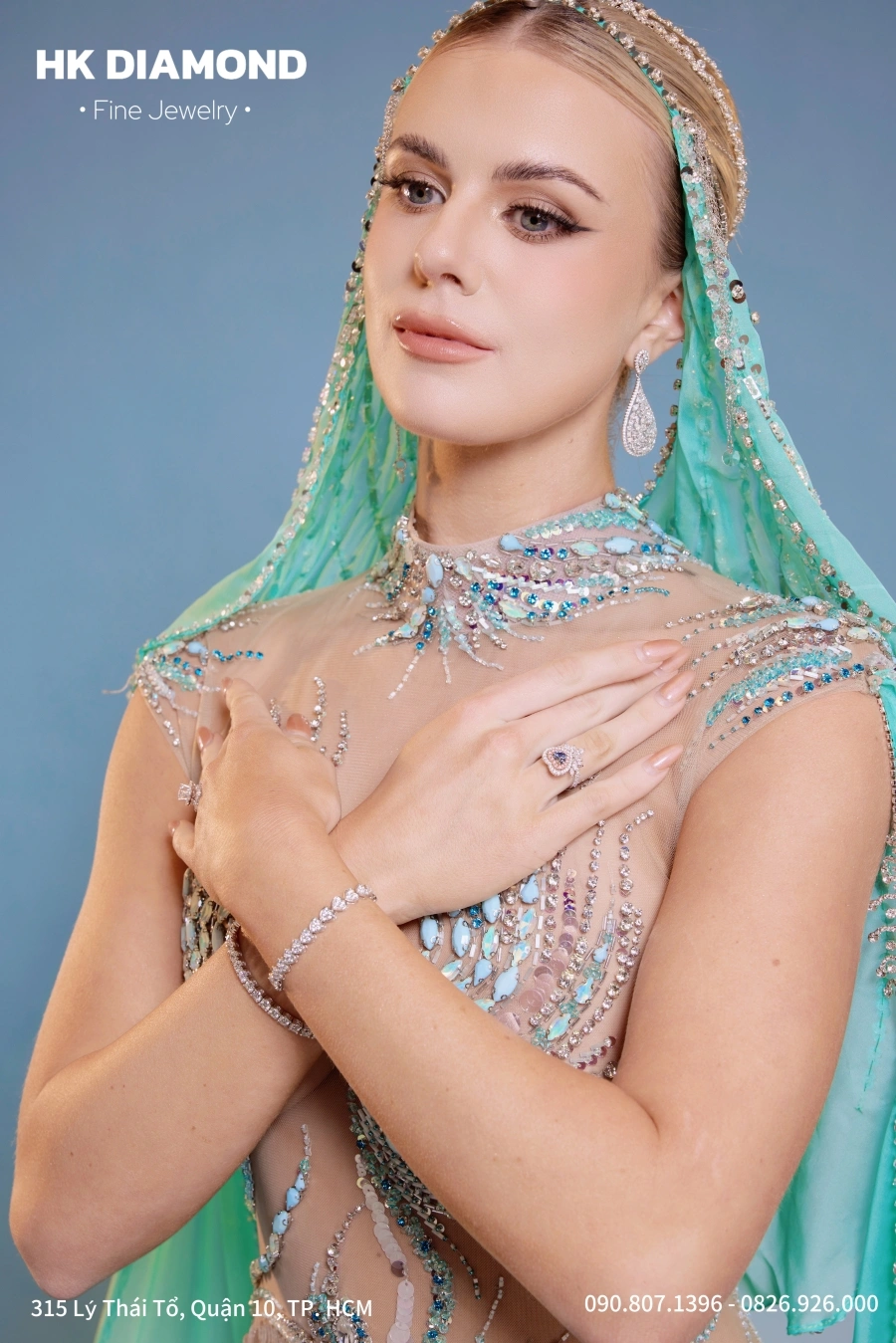 Không chỉ dừng lại ở những tuyệt tác kim cương, HK Diamond còn ghi dấu ấn với các thiết kế trang sức đá quý cao cấp, được tuyển chọn khắt khe và chế tác đầy tinh xảo. Chính sự đa dạng trong chất liệu cùng ngôn ngữ thiết kế sang trọng ấy đã chinh phục các biểu tượng nhan sắc quốc tế, trong đó có Miss Cosmo Australia, khi lựa chọn trang sức đá quý của HK Diamond để tỏa sáng, khẳng định thần thái thanh lịch và đẳng cấp trên sân khấu sắc đẹp.