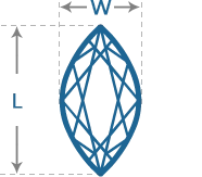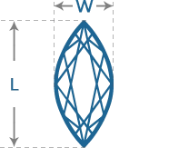 Chiều dài đến chiều rộng cho kim cương cắt Marquise (L ÷ W = Tỷ lệ chiều dài đến chiều rộng)