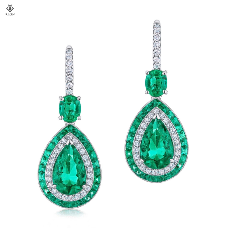 Bông Tai Kim Cương - Emerald - Spinel
